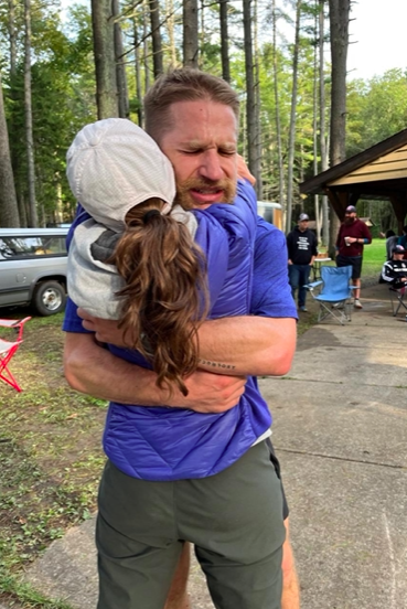 At the start of the race, I had placed an Apple Airtag in my pack in hopes that Michelle and my mom could track my whereabouts throughout the race. It was at this moment shortly after seeing this final runner that I heard the ping of the Airtag for the first time. This sound broke me out of my extreme focus and pace and reminded me of why I do these adventures. It is a reason many of us do these races: to prove to ourselves and those around us that the limits we set are only limited by our minds, because our bodies have so much more to give than we know. I proceeded to spend the next half mile with tears of joy and gratitude streaming down my face. These tears were replaced with childish joy, yells, and laughter as I made my way out of the woods, across the gravel path, and finally rounding off into the air across the finish line. My legs immediately hurt, my body tightened up, my feet screamed, but my mind was calm, quiet, and fulfilled.