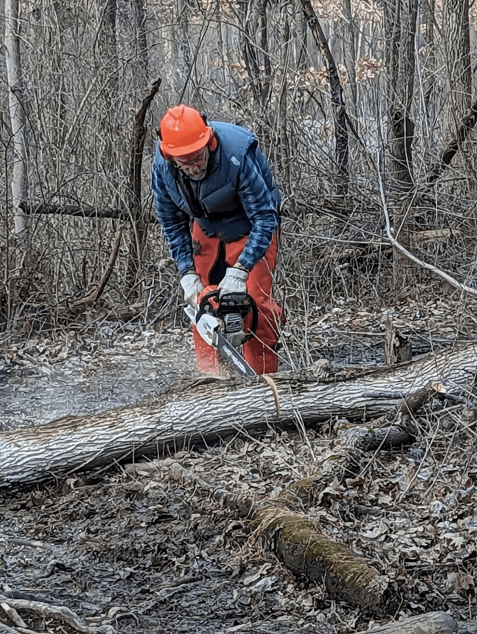 Trail Maintenance – Mike Whalen – one tree removed from the ski slope.