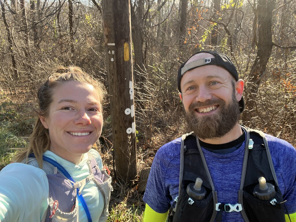 Our spouses (shout out to Katie and Mark!) generously agreed to crew for us, and they first met us around mile 11 with water and more food. The beginning portion of this route was predominately road, and, while Brandon and I prefer more trail, it was relatively easy to navigate. We did second-guess ourselves a few times, but we didn’t have any major issues until we got to a section of trail with a sign indicating the trail was permanently closed; we followed another trail that closely paralleled the original and did not have to deviate very far.