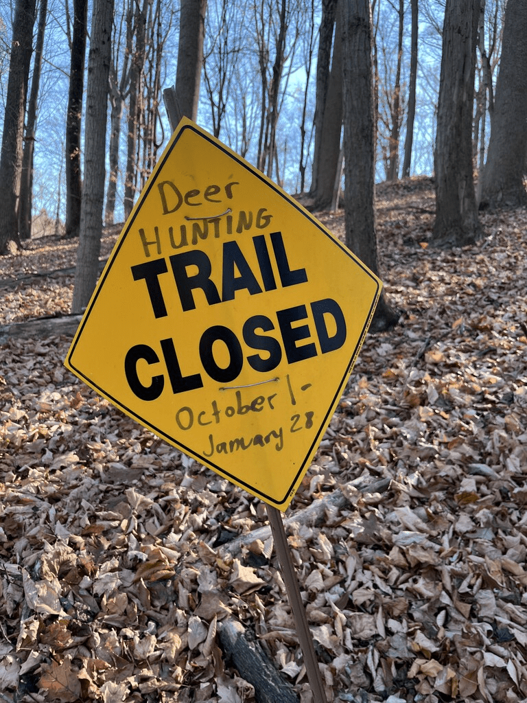 Shortly thereafter, we met our spouses at another “aid station” around mile 18 and continued on our way. Again, following white blazes at this point was easy, although around mile 20 we noticed that there was a slight discrepancy between the blazes and what was shown in the .gpx file. Another slight re-route occurred about 2 miles later, when we got to another section that was posted as “Closed from October-January due to deer season.” We were able to skirt around the section by following the road and linking back up with the original trail maybe half a mile later.