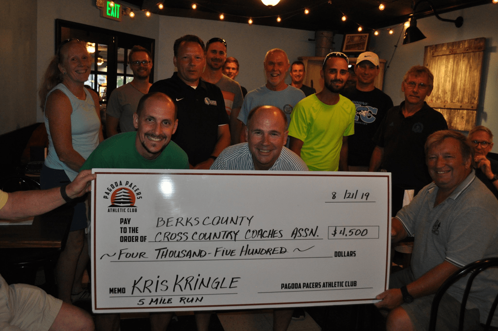 The Pacers made a fantastic donation to the Berks County XC Coaches Assn thanks to all of you. Don’t forget to sign up and run this years Kris Kringle 5 mile Run. Registration is open.